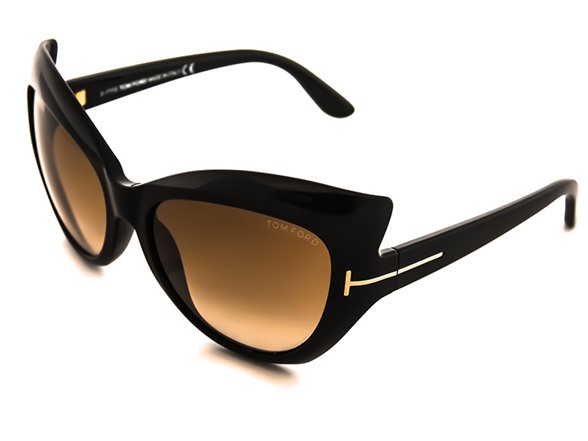 These Tom Ford TF284 01F Sunglasses showcase an ambitious full rim single bridge shiny black oversize cateye frame. Minimalist decor consists of gold trademark T" branding overlapping the hinges while the brown gradient lenses successfully catapult Bardot into the high fashion stratosphere. Measuring 59-17-135mm this item ships with its own distinctive case lens cleaning cloth and manufacturer's documents. "