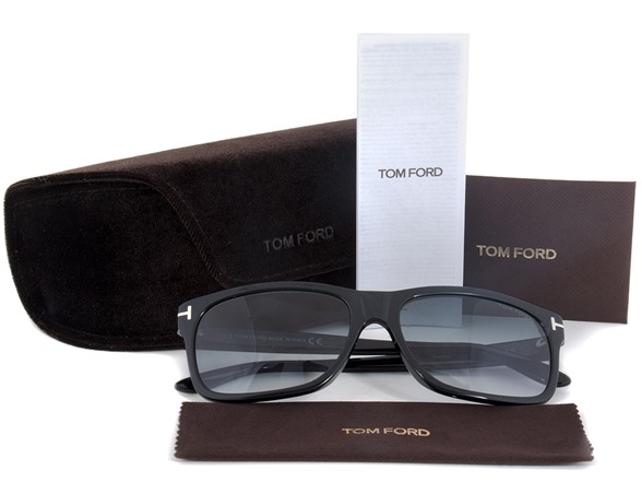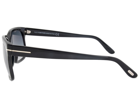 These Italian-made Tom Ford FT0376-02N Barbara sunglasses are genius in how they re-imagine a traditional look in a very current way. Shiny black colored rectangle-shaped full-rimmed frames with a single bridge surround a grey-blue gradient lens. The classic Tom Ford logo adorns the shiny black temples. Measuring 58-16-145mm this item ships with its own sunglass case lens cleaning cloth and manufacturer's documentation