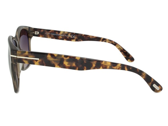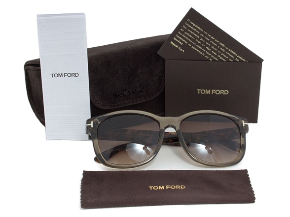 These Tom Ford TF395 34K Sunglasses feature a progressive design which showcases a translucent taupe full rim single bridge soft rectangular frame. Additional aesthetically pleasing appeal is provided by the minimalist light platinum toned trademark T" branding overlapping the hinges and the contrasting tortoise arms. Measuring 57-17-145mm this item ships with its own case lens cleaning cloth and manufacturer's documentation. "