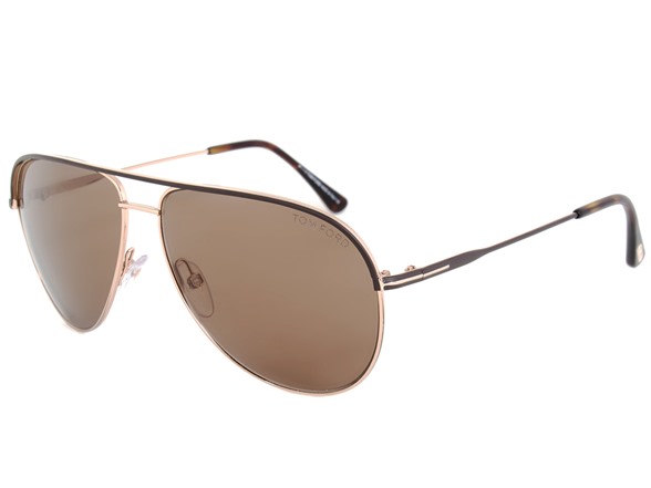 Authoritatively convincing these Tom Ford TF466 50J Sunglasses project an upper dark brown full rim double bridge aviator frame with rose gold lower section. Trademark ?T? branding overlaps the hinges while the slender arms and smoke brown lenses provide mystique. Measuring 59-12-140mm this item ships with its own case lens cloth and designer?s documents.