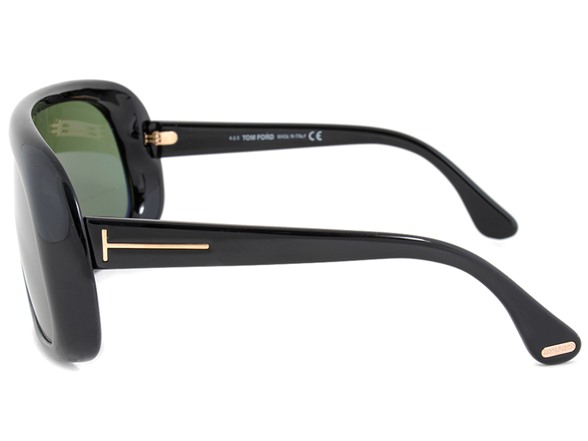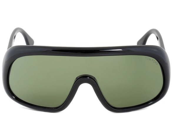 Wholeheartedly enticing with a touch of eccentricity thrown in these Tom Ford FT0471 01N Sunglasses emphatically exhibit a shiny black full rim oversized shield frame. The tapering paddle arms silver tone ?T? branding and one piece green lens adds significant flavor to Sven?s undeniable appeal. Measuring 00-00-135mm this item ships with its own distinctive case lens cleaning cloth and designer?s documents.