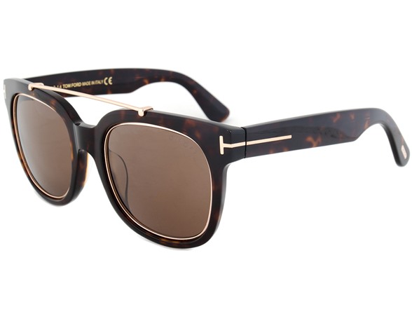 These Italian-made Tom Ford FT9356-52J sunglasses stand out for a reason combining two classic styles – aviator and square-shaped - and created something fun distinctive stylish – a modern day classic in it’s own right. These trendy frames combine a dark tortoise acetate with gold metal full-rimmed frames and a single bridge. These frames surround a brown gradient lens underneath a gold colored top bar. Of course the classic Tom Ford logo adorns the shiny and sleek tortoise temples. Measuring 54-22-145mm this item ships with its own sunglass case lens cleaning cloth and manufacturer's documentation.