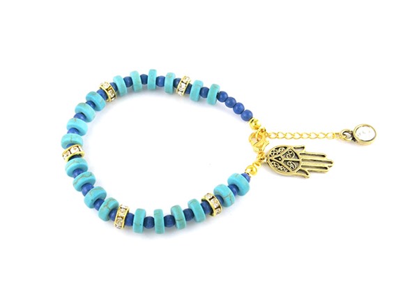 Turquoise and Crystal Hamsa Charm Bracelet