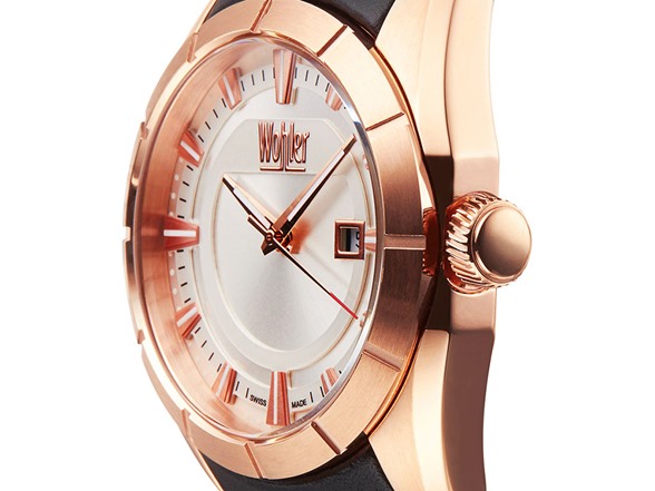 Genuine Swiss Made Ronda 1015 Movement, Ion Plated Stainless Steel Case, Swiss Reserved Collection Number on Case Back, Soft Genuine Leather Strap, Visible Date Window 6. Water Resistant to 10ATM (100m or 330ft), Luminescent Hands and Indices and Coin Edge Push/Pull Crown